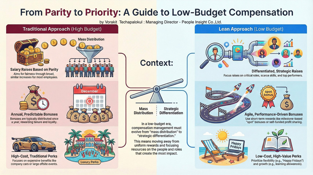การเปลี่ยนแนวคิดนี้ ไม่ใช่การลดคุณค่าของคนส่วนใหญ่ แต่คือการยอมรับความจริงว่า ในยุคทรัพยากรจำกัด องค์กรไม่สามารถใช้เงินแบบ “หว่าน” ได้อีกต่อไป และจำเป็นต้องใช้ทุกบาทให้สอดคล้องกับเป้าหมายเชิงกลยุทธ์อย่างแท้จริง